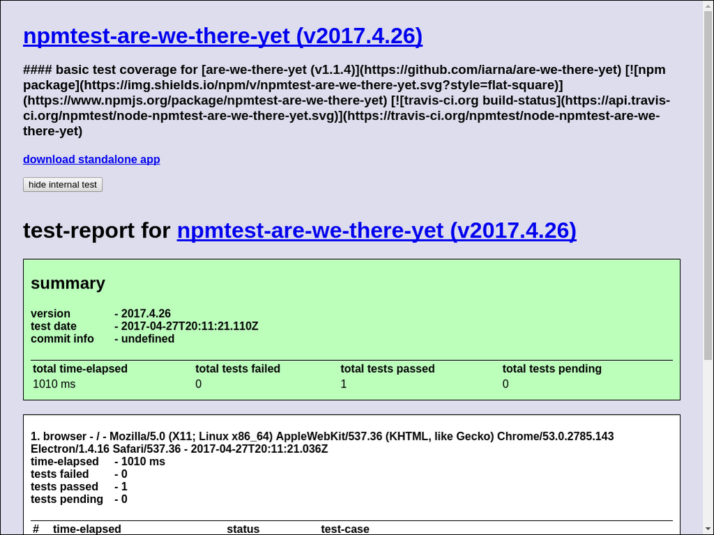 | total time-elapsed | total tests failed | total tests passed | total tests pending |