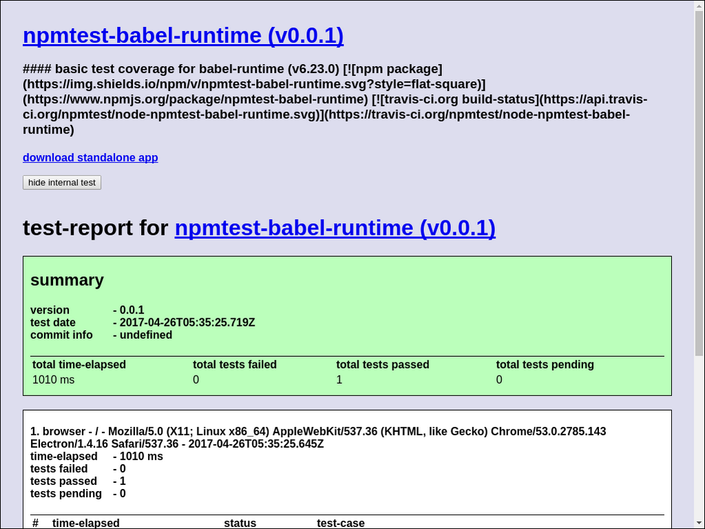| total time-elapsed | total tests failed | total tests passed | total tests pending |