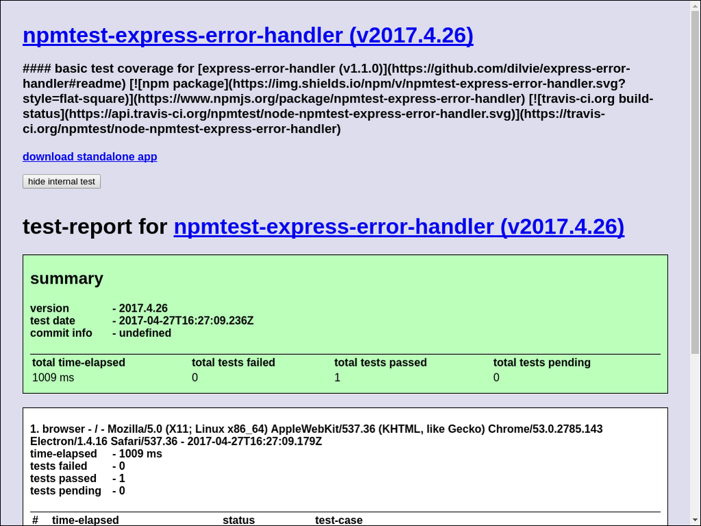 total time-elapsed | total tests failed | total tests passed | total tests pending |