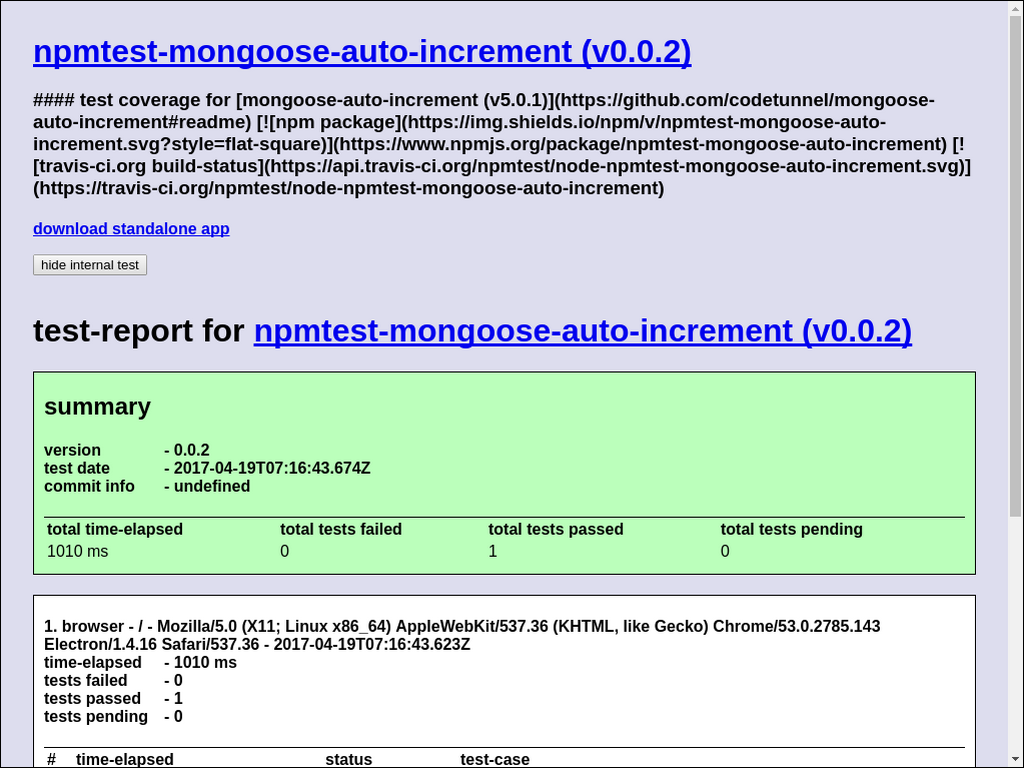 total time-elapsed | total tests failed | total tests passed | total tests pending |
